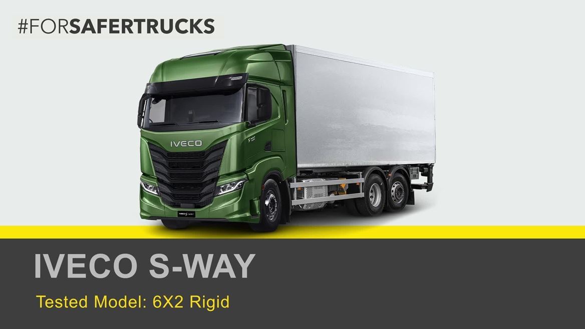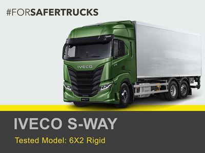regardless of chassis length and axle configuration. IVECO supplied a new 2025 S-WAY tractor unit for testing equipped with all available systems that Euro NCAP assess. It achieved a 2-star rating. Whilst its direct vision is average for a long haul cab, the optional camera monitor system for class II and IV views enhances both direct and indirect vision. The driver attention assist system observes directly for signs of driver distraction and fatigue. The ACC works in conjunction with the speed assist system to set the travel speed to the local speed limit, and also proved highly effective at preventing front to rear collisions. Assessed collision avoidance technologies available are limited to AEB for front to rear collisions with other vehicles. Its performance was rated as acceptable. The absence of safety technologies protecting pedestrians and cyclists suggests the S-WAY is most appropriate for highway operation.